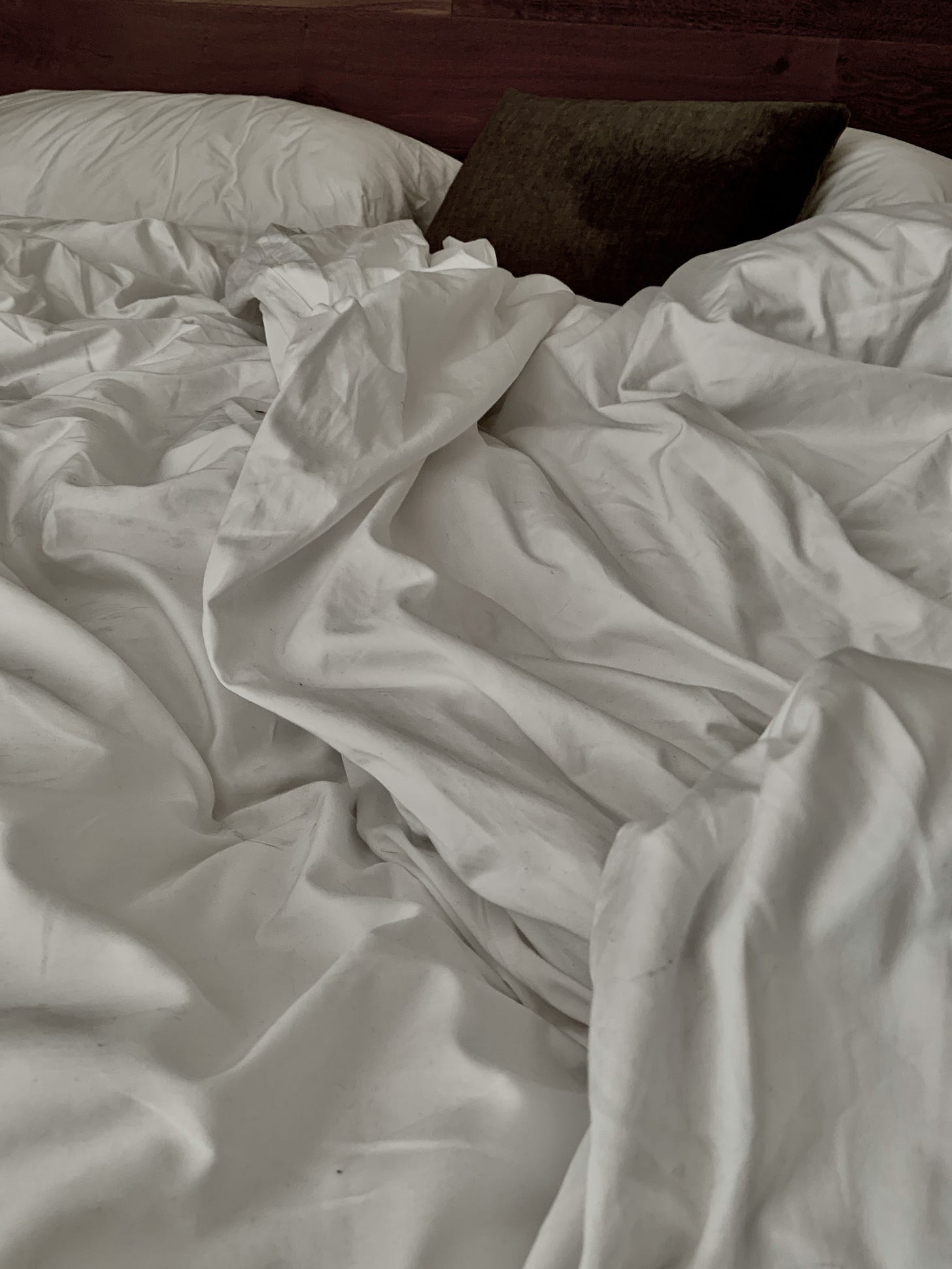 “I’m out. I can’t,” I said. “But it’s fine. I was starting to get hot and sweaty, and I don’t want to have to change the sheets again.” Changing the sheets is an awful chore. There are so many small linens that get stuck to each other. Then they have to get to the washer, dryer, and back to the bed before sleep.