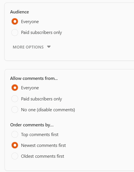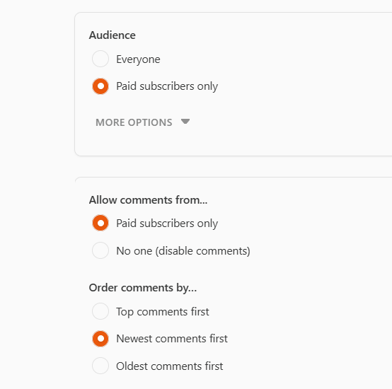 One? Many are still not using the settings feature well. I often see comments set to paid only, and I know many of you don’t use the Substack topics still.