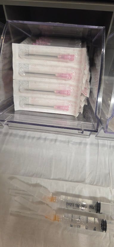 We did more injections, varying to trigger points and epidurals. I told him to save his lidocaine the twentieth visit. I was used to it, and some other patients might need it if there’s ever a shortage.