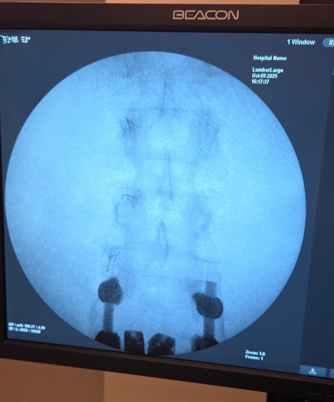 After I had to take time off work, about 90 days later, I went to the doctor. She told me how strong the lumbar is, how it can get irritated, but let’s get an Xray just to be sure. Cross our i’s and dot our t’s.
